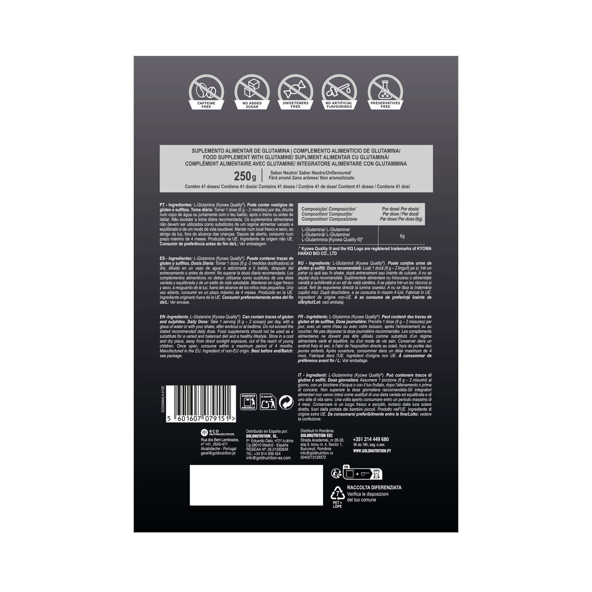 Ajuda a evitar o catabolismo e apoia a recuperação. Glutamine Powder GoldNutrition® fornece 100% L-glutamina Kyowa, pura e sem aditivos.