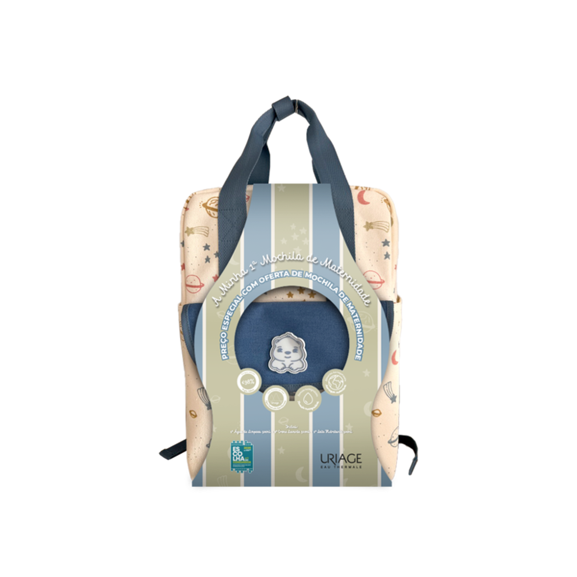 A 1º Mochila de Maternidade reune os principais cuidados da higiene do bebé. 1º Creme Lavante limpa em suavidade e preserva o filme hidrolipídico.