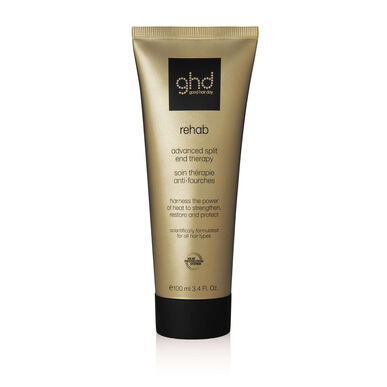 Repara, fortalece e protege o teu cabelo com o ghd Rehab™ – Advanced Split End Therapy, o tratamento nutritivo ativado pelo calor que sela as pontas espigadas por até 10 lavagens.