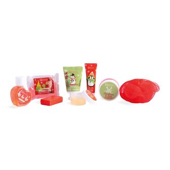 Coffret composto por: Gel duche + Sais de Banho + Sabonete + Loção Corporal Hidratante + Creme de mãos + Hidratante Labial + Esfoliante + Esponja