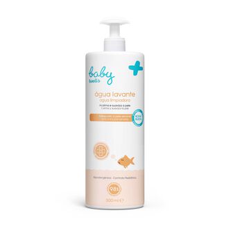 Água de limpeza que elimina as impurezas do rosto e corpo do bebé sem ser necessário enxaguar.