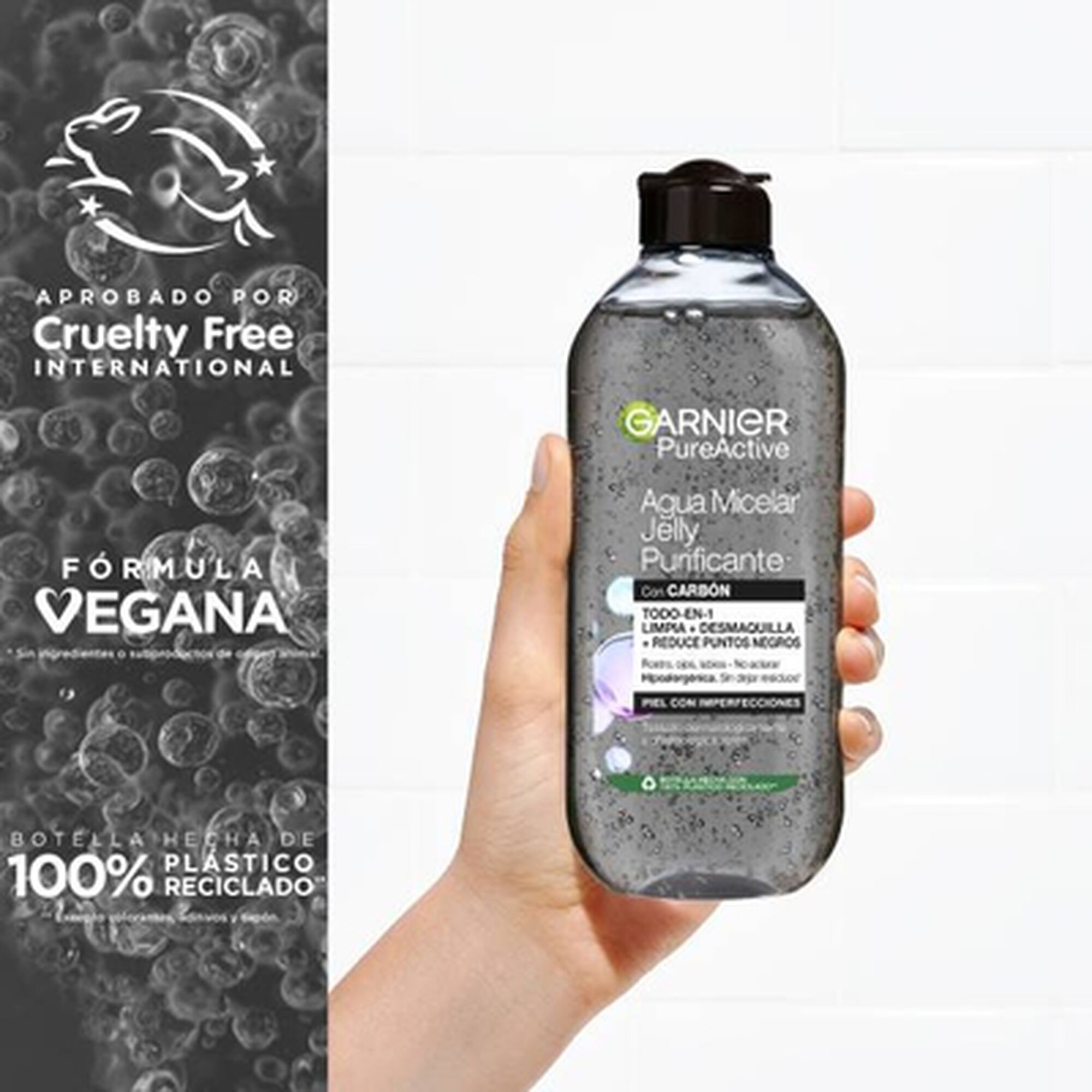 Limpa, desmaquilha e purifica a sua pele com água micelar de carvão e ácido salicílico em gel Garnier Pure Active:
