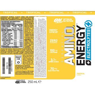 A Amino NRG + Electrolytes da Optimum Nutrition é uma bebida gaseificada refrescante, formulada com aminoácidos de cadeia ramificada (BCAAs), cafeína de fontes naturais e eletrólitos.