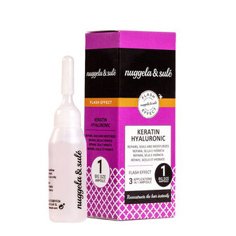 A ampola de cabelo reparadora Keratin Hyaluronic da Nuggela & Sulé repara o cabelo após o desgaste diário e reconstrói-o de forma instantânea, selando e