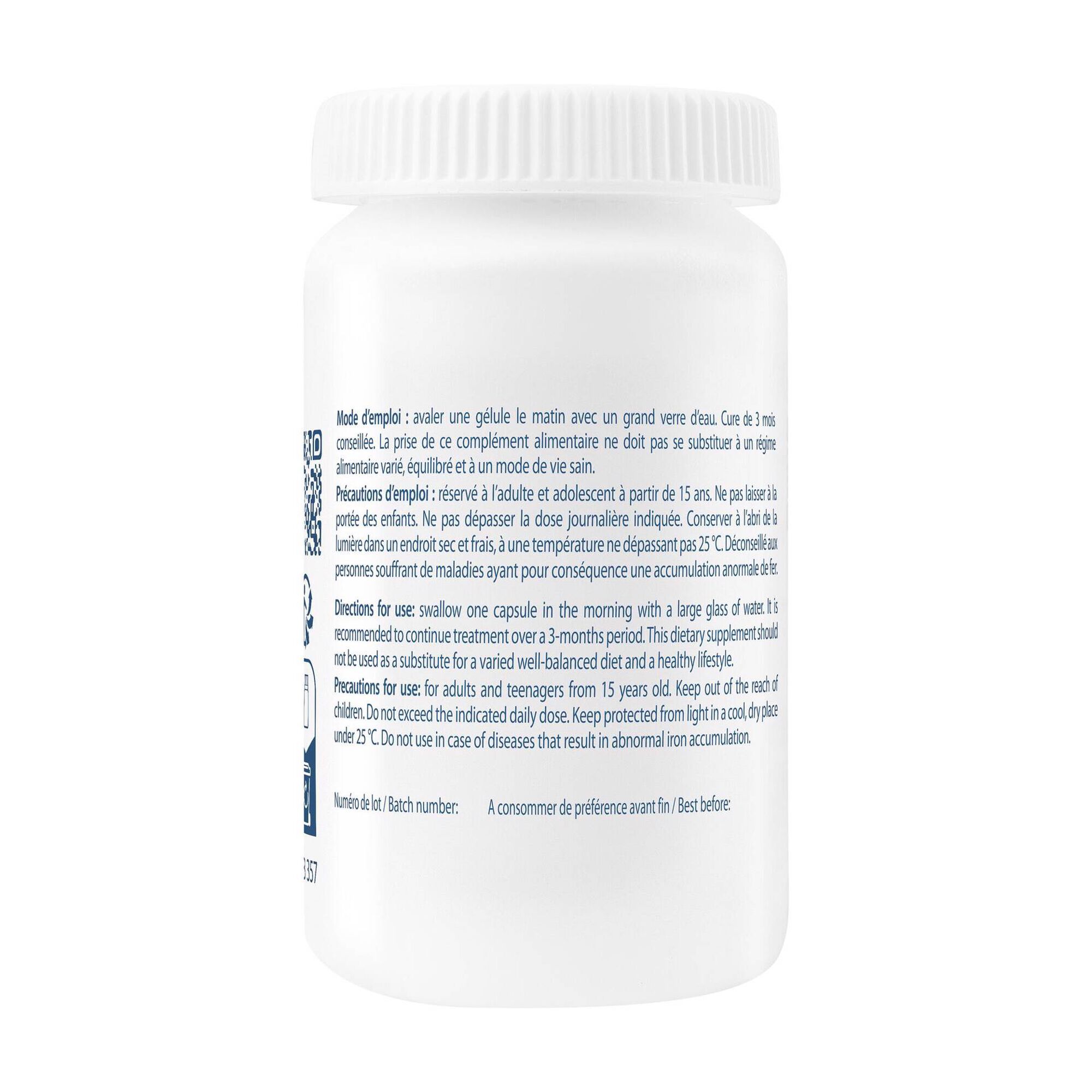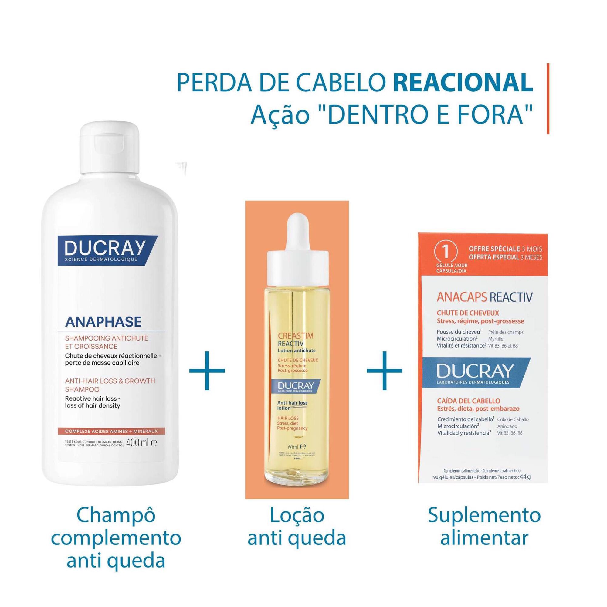 MAIS INFORMAÇÕES:• Este suplemento alimentar não substitui uma dieta variada e equilibrada e um estilo de vida saudável.• Para ser consumido de preferência antes da data indicada na embalagem e para ser armazenado num local fresco, seco e protegido da luz solar.• Pode ser utilizado em couro cabeludo sensibilizado pelos tratamentos para o cancro*.PRECAUÇÕES DE UTILIZAÇÃO:• Manter fora do alcance das crianças.• A dose diária indicada não deve ser excedida.• Não recomendado para pessoas que sofram de doenças que resultam numa acumulação anormal de ferro.Contacto: Ducray Laboratoires Dermatologiques Ducray, Les Cauquillous, 81506 Lavaur Cedex, France ; contact.ducray@pierre-fabre.com