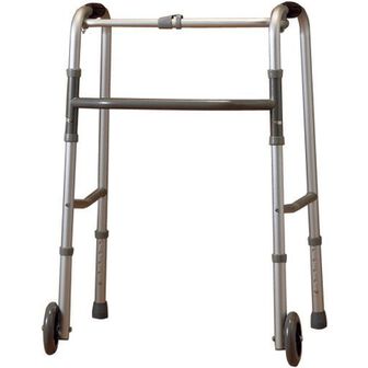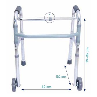 Andarilho com rodas em alumínio. Regulável em altura. Dobrável.