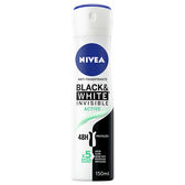 Proteja as suas axilas e as suas roupas contra a transpiração: o preto fica preto e o branco fica branco por mais tempo: NIVEA Black & White Invisible Active Spray, 150 ml.
