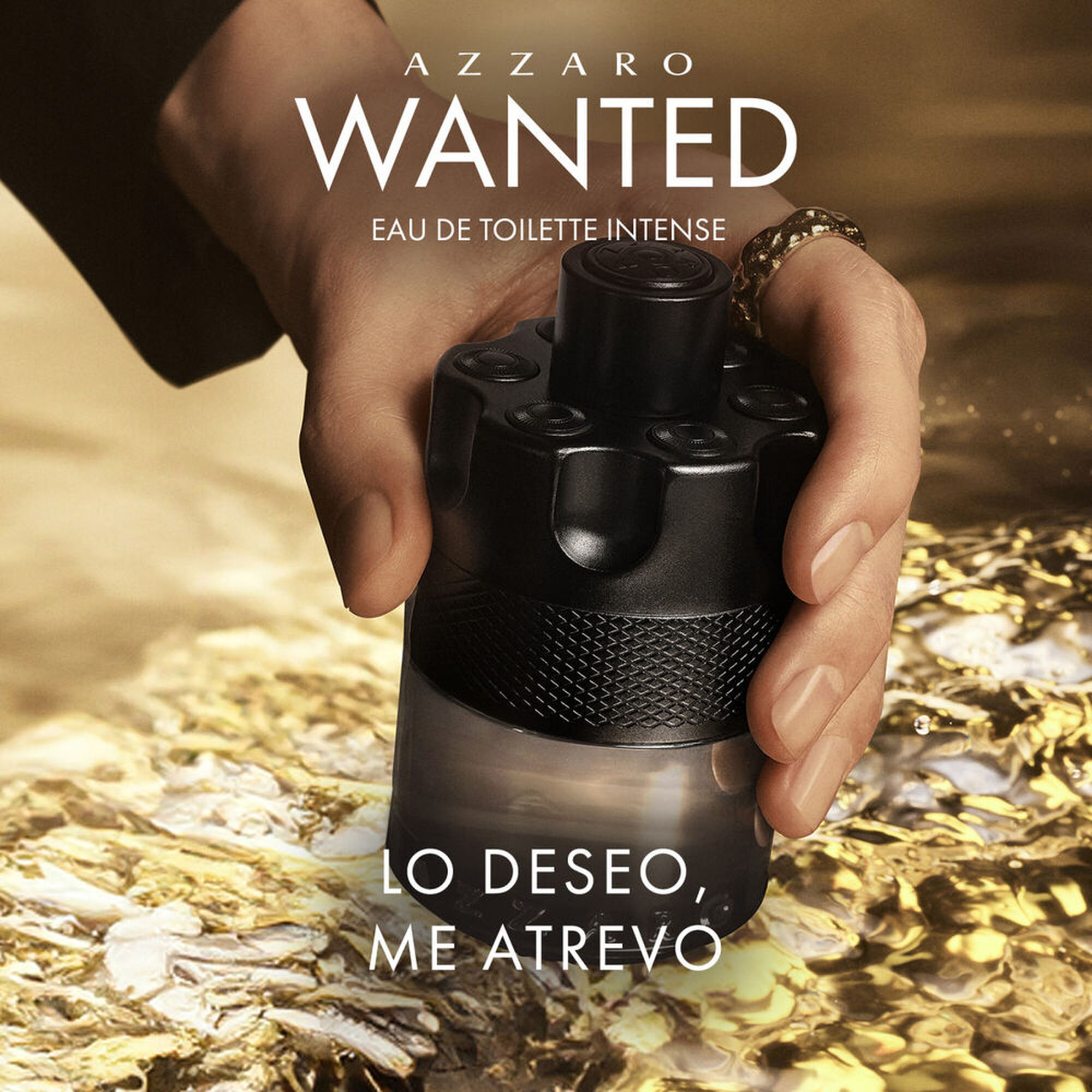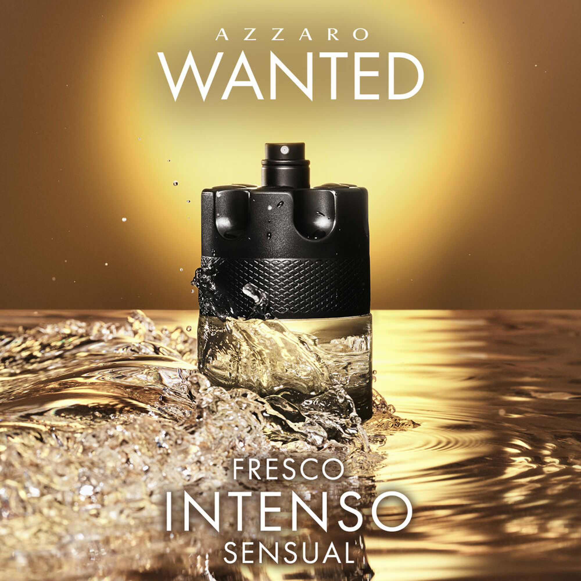 O emblemático frasco de Azzaro The Most Wanted é reinventado para esta versão Eau de Toilette Intense, com o icónico tambor de revólver num preto intenso, o vidro laqueado com um degradê em tons de preto e a essência luminosa que reflete a frescura da fragrância.