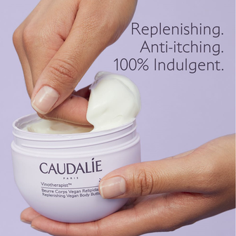 Antiprurido e 100% bem-estar, o Bálsamo Corporal Vegan Relipidante Vinotherapist™ nutre intensamente durante 24 horas e repara a pele seca com tendência atópica, proporcionando-lhe um conforto de longa duração.