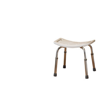 Banco de alumínio cromado. Regulável em altura. Base com perfurações para saída de água.