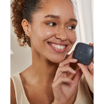 Para uma pele profundamente limpa, matificada e livre de pontos negros: NIVEA Barra de Limpeza Naturally Clean Exfoliante, 75gr.