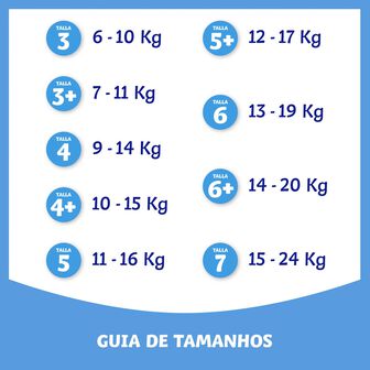 1) Tripla Camada Absorvente, que bloqueia instantaneamente o xixi afastando-o da pele do seu bebé para uma boa proteção contra a humidade;
