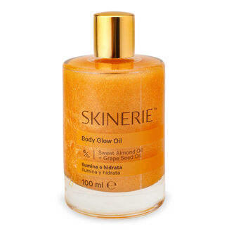 O Óleo Iluminador Corporal Skinerie possui uma textura leve de rápida absorção, que combina ação emoliente e nutritiva com um acabamento acetinado. Contém micropartículas refletoras de luz que proporcionam um efeito luminoso imediato, enquanto os óleos vegetais de amêndoas doces e grainhas de uva reforçam a hidratação e mantêm a pele suave e visivelmente radiante.