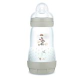 Biberão para alimentação do bebé com leite materno ou fórmula. Indicado para evitar a formação de cólicas resultantes da ingestão de ar durante a alimentação do bebé. Função de auto esterilização diretamente no micro-ondas.