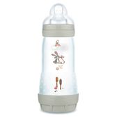 Biberão para alimentação do bebé com leite materno ou fórmula. Indicado para evitar a formação de cólicas resultantes da ingestão de ar durante a alimentação do bebé. Função de auto esterilização diretamente no micro-ondas.