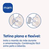 Tetina plana e macia, tal como a mama da mamã ao amamentar.