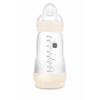 Mam Biberão Anti-Cólicas Easy Start tem a superfície de silicone sedosa e suave, para uma sensação familiar. O fluxo suave impede que o bebé engula ar e reduz as bolhas de ar e as cólicas.
