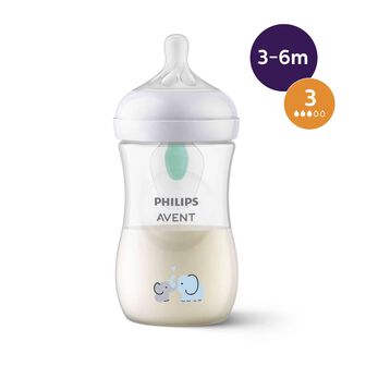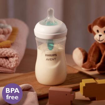 Com o sistema AirFree. Concebido para oferecer proteção extra contra problemas de alimentação tais como gás e refluxo, impedindo que o ar entre na barriga do seu bebé enquanto este se alimenta na posição vertical.