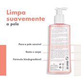 A fórmula sem sabão e com um pH fisiológico, é adequada para a pele sensível , para o rosto e corpo.