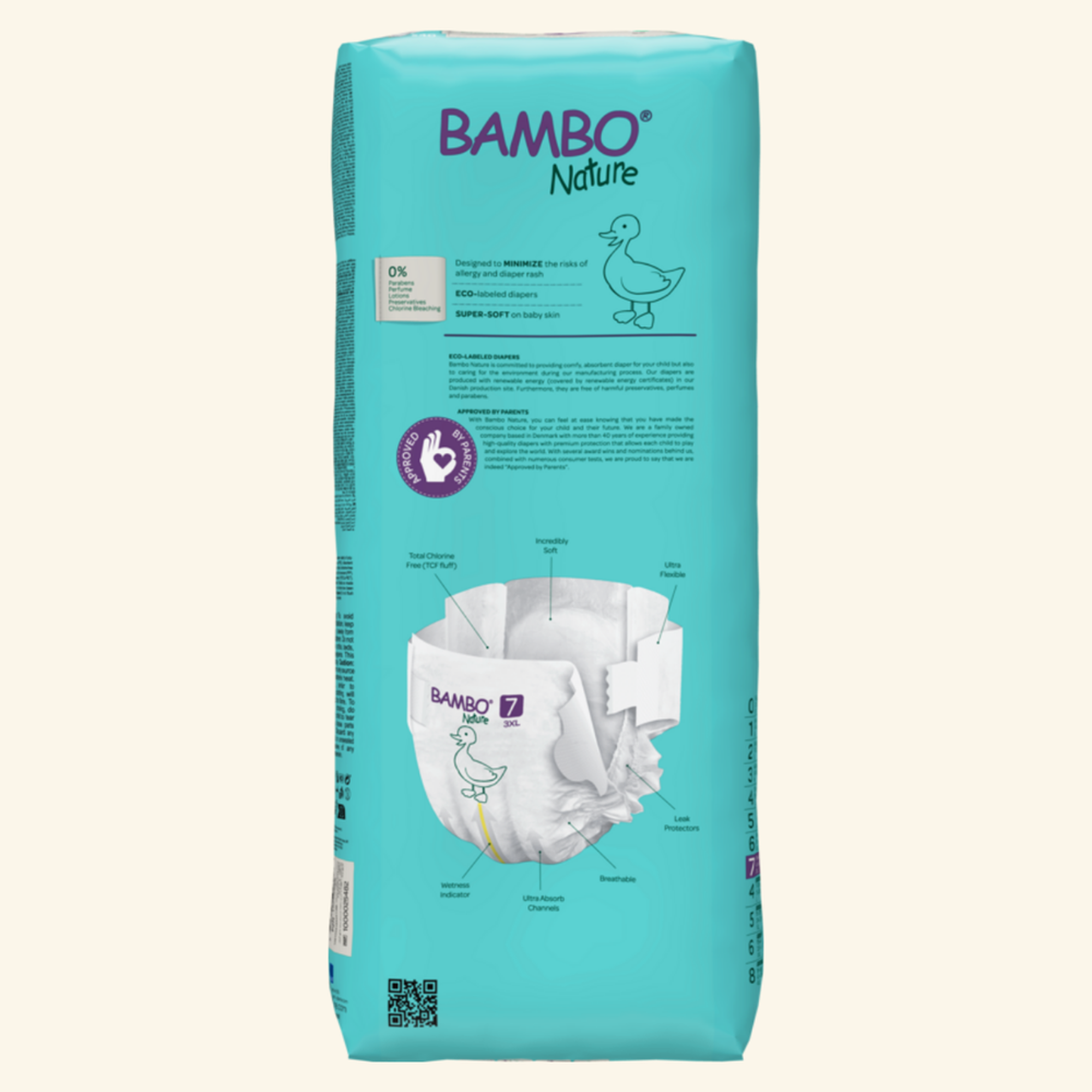 As Fraldas Bambo Nature T7 são perfeitas para bebés e crianças com mais de 18kg.