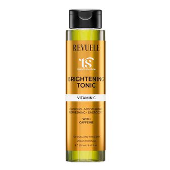 O tónico iluminador de rosto Revuele Target Solution contém Vitamina C e Cafeína que produz o efeito antioxidante, hidrata a pele, normaliza o nível de pH.