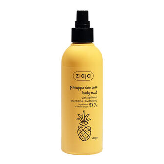 A Bruma corporal Ziaja com cafeína proporciona cuidados rápidos e eficazes na tua pele, estimula, refresca e hidrata a tua pele, deixando uma fragrância leve e agradável de ananás. Possui na sua fórmula ingredientes como extrato de ananás, provitamina B5 (D-Pantenol), cafeína que produzem o efeito de conforto e pele luminosa proporcionando uma sensação de suavidade.