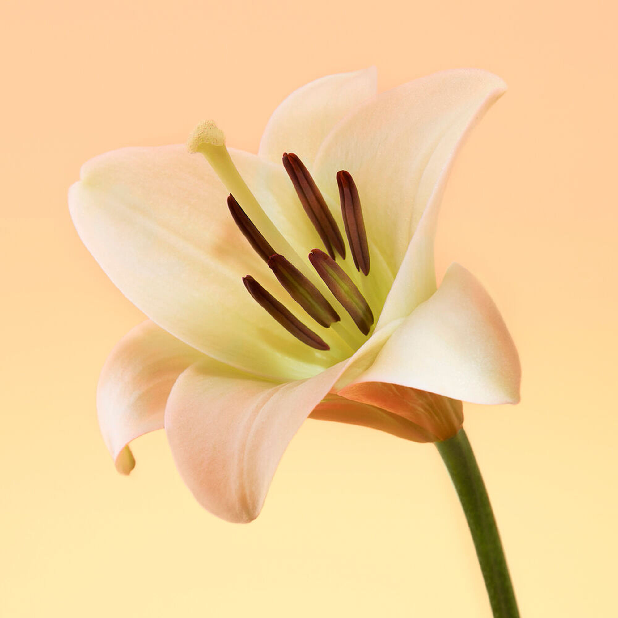 As notas de topo de bergamota, lírio branco e rosa branca terminam com tons picantes de sândalo. Floral mas picante.