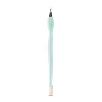 Um acessório versátil para umas cutículas perfeitas. Usar a extremidade mais larga de borracha para empurrar para trás as cutículas moles e peles secas. De seguida, usando a extremidade de duas pontas, remover cuidadosamente o excesso de cutícula.