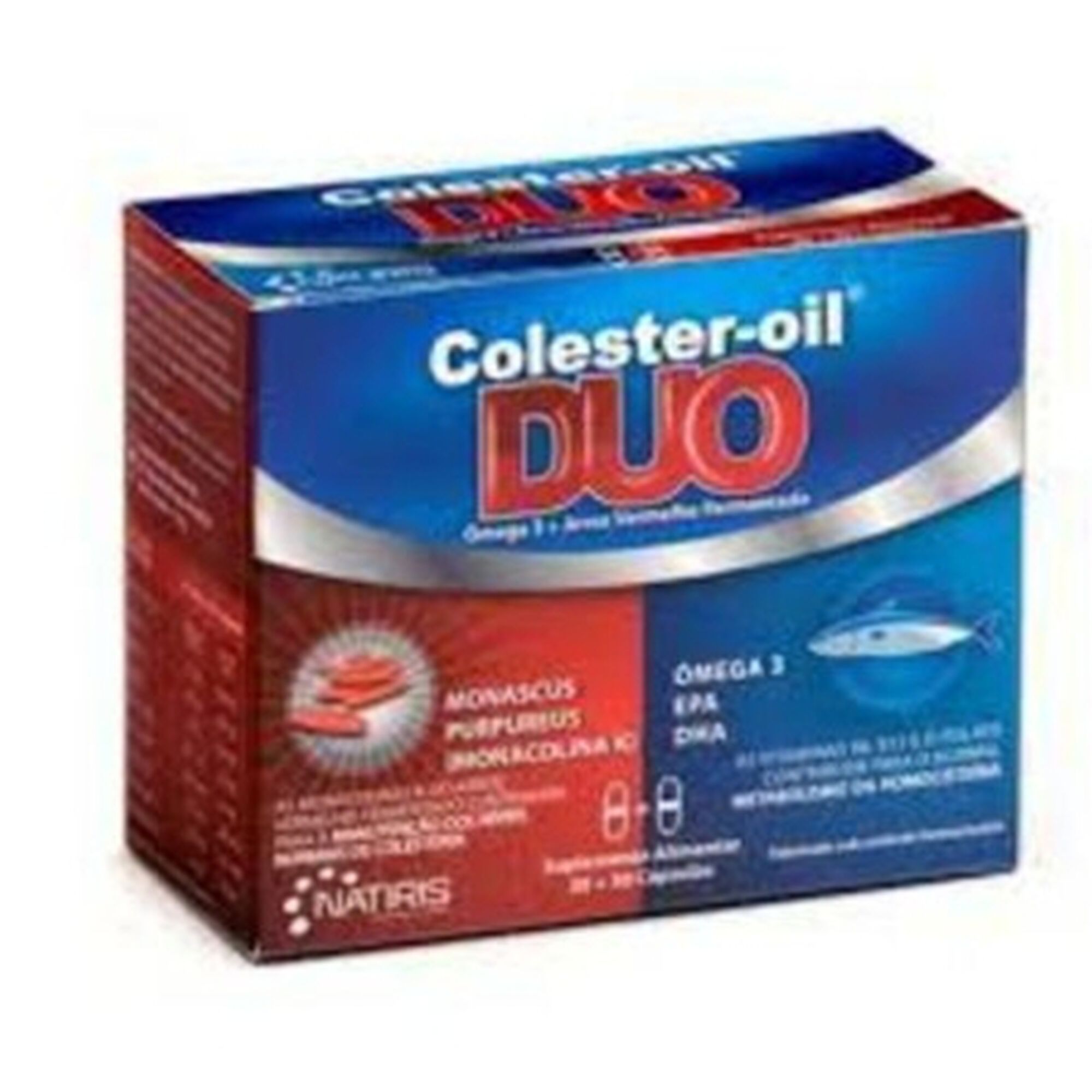 Mistura de óleos de peixe rica em EPA e DHA + Monascus purpureus (Arroz vermelho fermentado), Vitaminas B2, B6, B12 e Ácido fólico, para a saúde do coração e das artérias e para a manutenção dos níveis normais de colesterol.