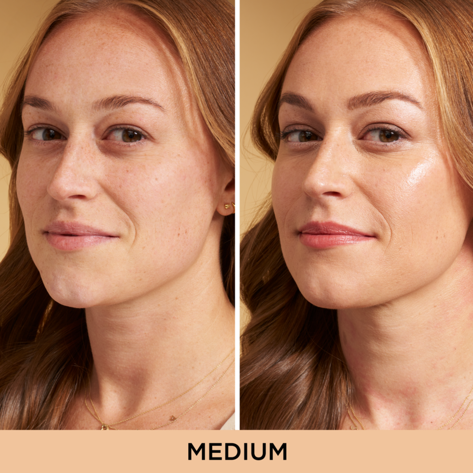 Consiga uma pele mais luminosa e hidratada instantaneamente com CC+ Nude Glow com SPF 40, uma base de cobertura média com acabamento luminoso. Com 90% de ingredientes que cuidam da pele, a nossa fórmula contém sérum iluminador com 2% de niacinamida, ácido hialurónico, extrato de chá verde e SPF 40.
