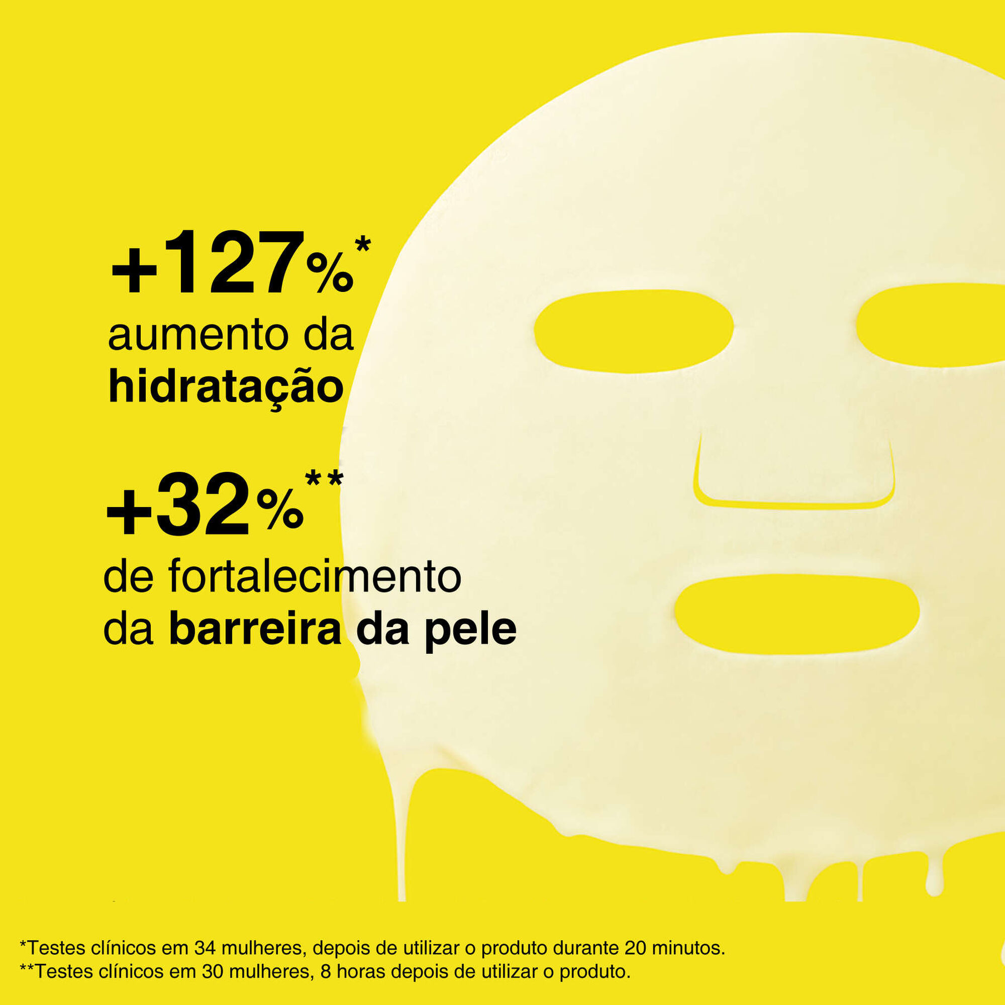 *Testes clínicos em 34 mulheres, depois de utilizar o produto durante 20 minutos.