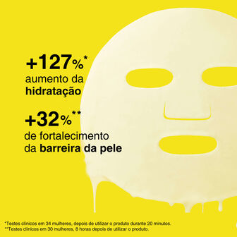 Formulada com Ceramida NP e Pantenol para reforçar a barreira da pele e Glicerina para uma hidratação intensa. Esta máscara nutritiva em folha envolve a pele, deixando-a suave, flexível e cheia de hidratação. Ajuda a atenuar visivelmente a aparência das linhas finas de secura. Testado por dermatologistas.