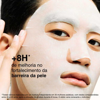 Uma máscara hidratante em folha com Ceramida NP e Glicerina que preenche a pele seca, para aliviar a sensação de repuxar, e reforça a barreira da pele durante 8 horas.