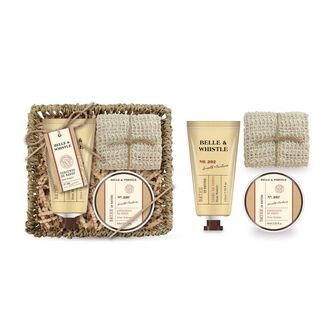Coffret composto por: Cesto + Toalha de Sisal + Esfoliante de corpo (60ml) + Loção de corpo (100ml).