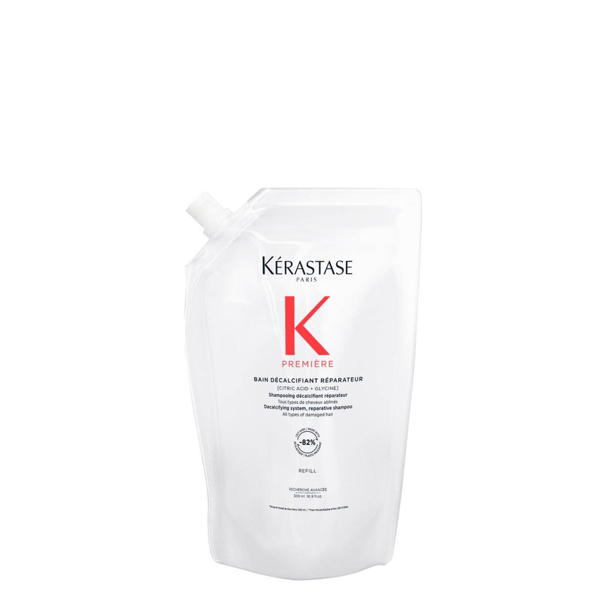 Kérastase Première Bain Décalcifiant Réparateur é um champô descalcificante e reparador para todos os tipos de cabelo excessivamente processados ou danificados. Este champô profissional sem sulfatos** limpa suavemente o cabelo e o couro cabeludo, eliminando a acumulação de cálcio, que fragiliza ainda mais o cabelo tratado. O cabelo é reparado de dentro para fora, a quebra é reduzida e a vitalidade é restaurada.