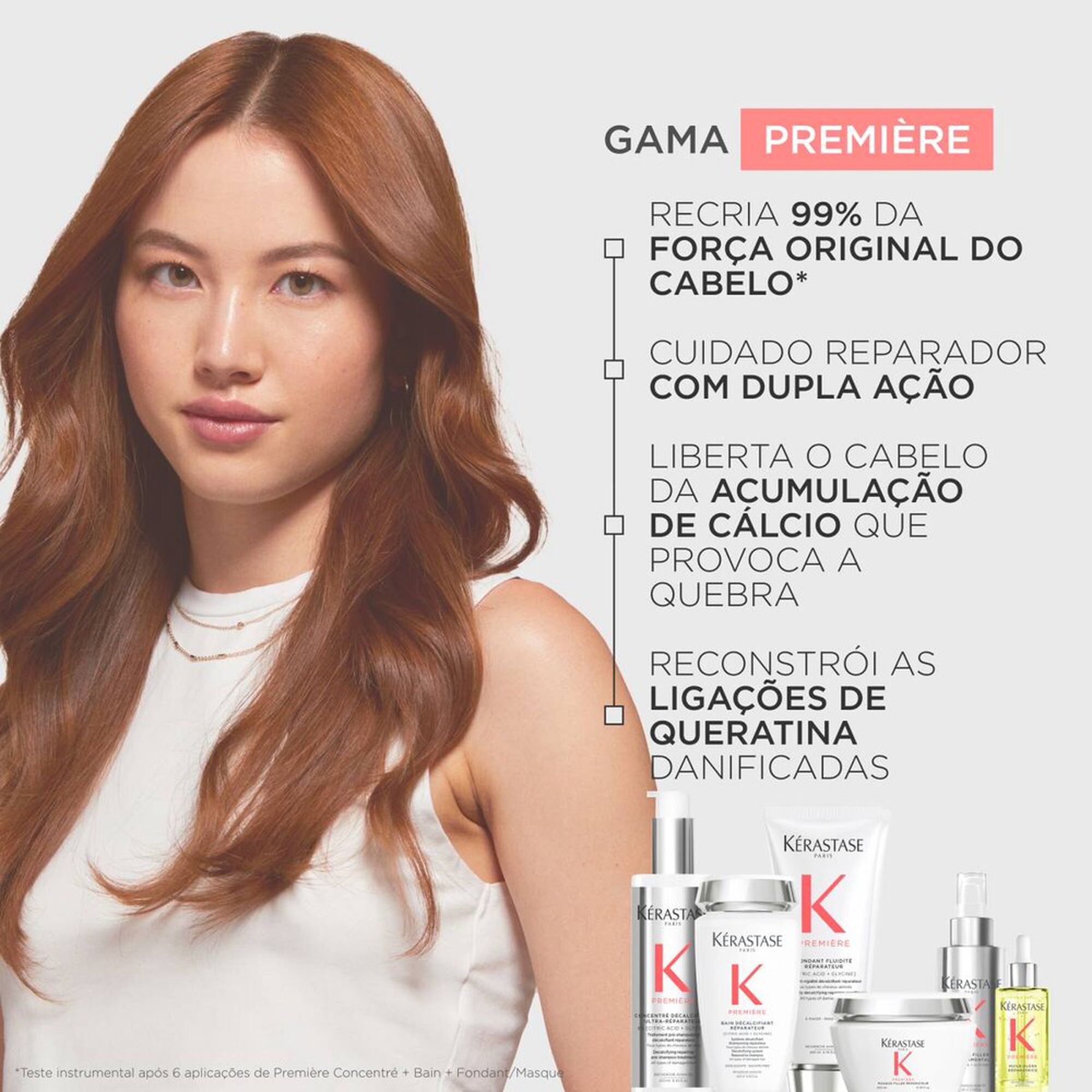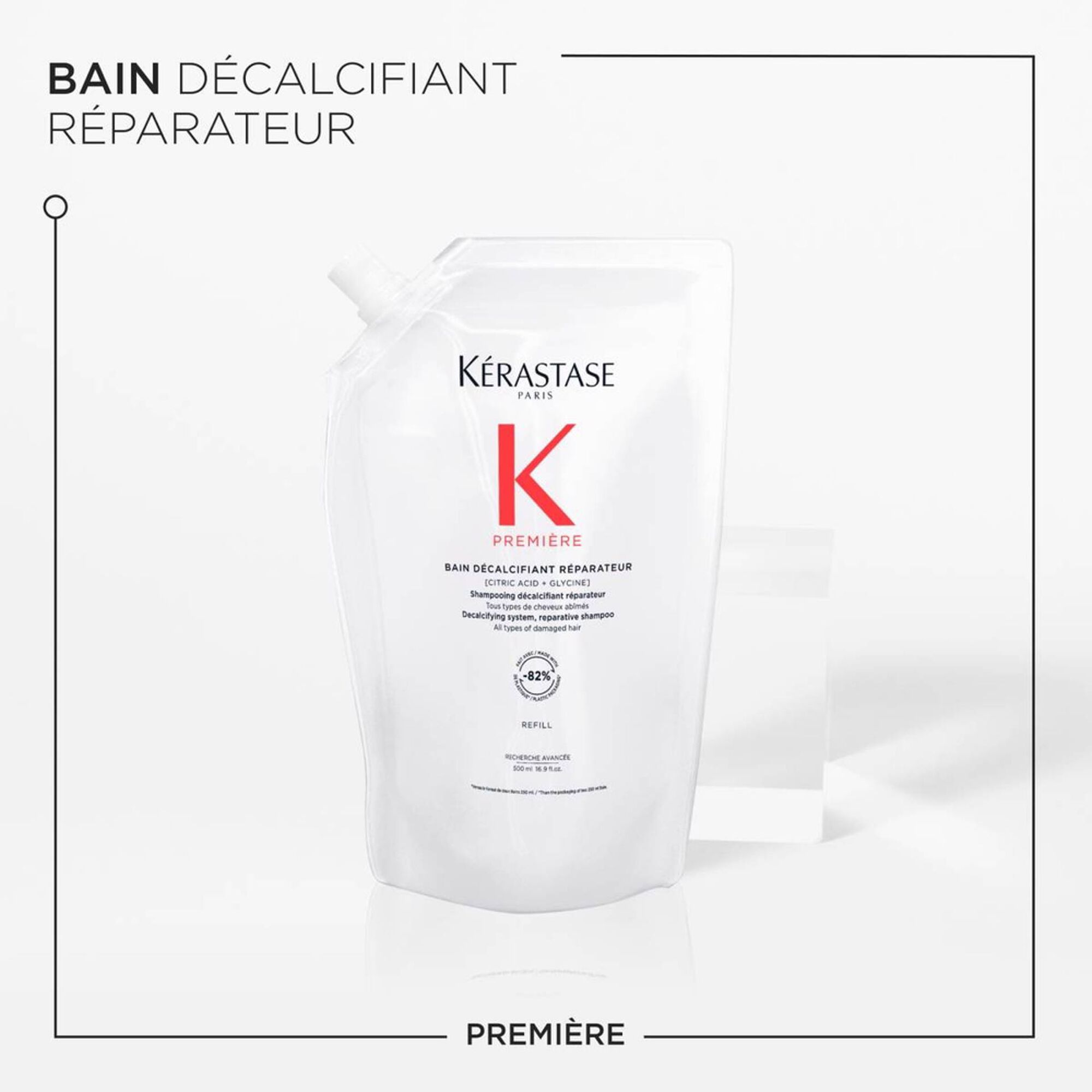 Recomendamos a aplicação de uma camada de Kérastase Première Bain Décalcifiant Réparateur sobre Kérastase Concentré Décalcifiant Ultra-Réparateur sem enxaguar para obter o máximo resultado. Combinar com outros produtos da gama Première, como Masque Filler Réparateur, para uma maior reparação e melhores resultados.