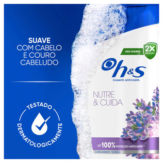 H&S Nutre & Cuida Champô Anticaspa para todos os tipos de cabelos e couro cabeludo eficiente contra a caspa persistente. Champô de uso diário para homem e mulher, com Microbiome Balance a fórmula que ataca a origem do caspa, mantendo o equilíbrio do microbioma do couro cabeludo.