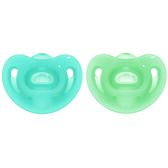Forma flexível e levemente curvada que se adapta como uma segunda pele, sem lhe cobrir o nariz ou dificultar a respiração. Formato Ortodôntico reduz o risco de desalinhamento dos dentes e da mandíbula.; Com embalagem que permite a higienização no micro-ondas bem como o transporte das mesmas. 100% silicone extra suave. Adequado para bebés com idade compreendida entre os 0 e 6 meses de idade. Não é possível selecionar a cor para este artigo; se não receber a cor desejada, por favor dirija-se a uma loja para efetuar a troca.