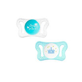 Chupeta com uma tetina ortodôntica e ativa, que favorece ativamente o desenvolvimento correto da boca do bebé.
