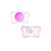 Chupeta com uma tetina ortodôntica e ativa, que favorece ativamente o desenvolvimento correto da boca do bebé.