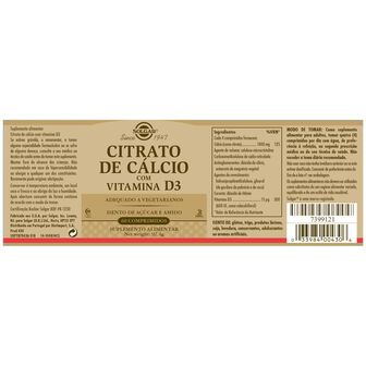 Suplemento alimentar à base de citrato de cálcio com vitamina D3.