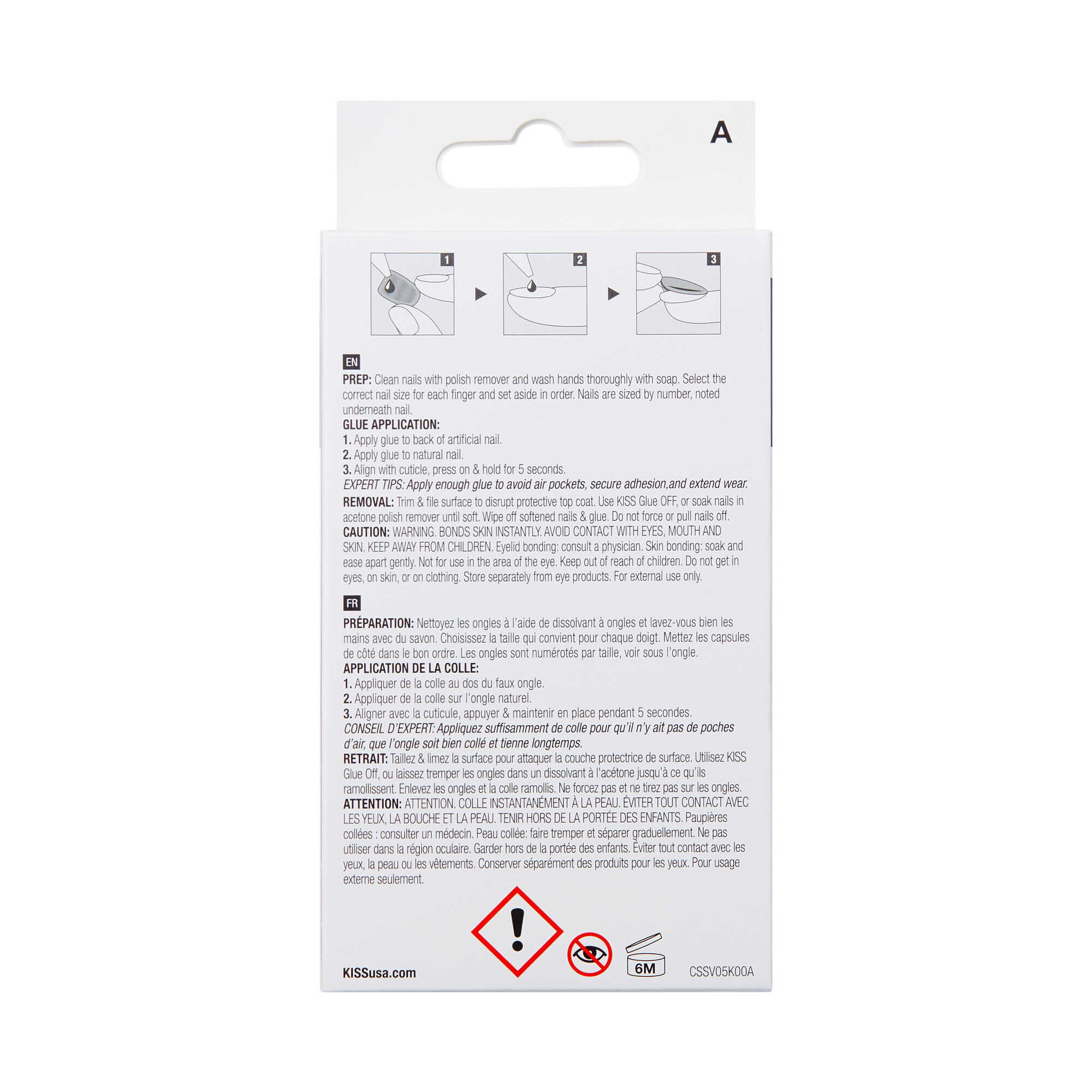 Aplique a cola na parte de trás da unha postiça. Aplique a cola na unha natural. Alinhe com a cutícula, pressione suavemente e mantenha por 5 segundos.