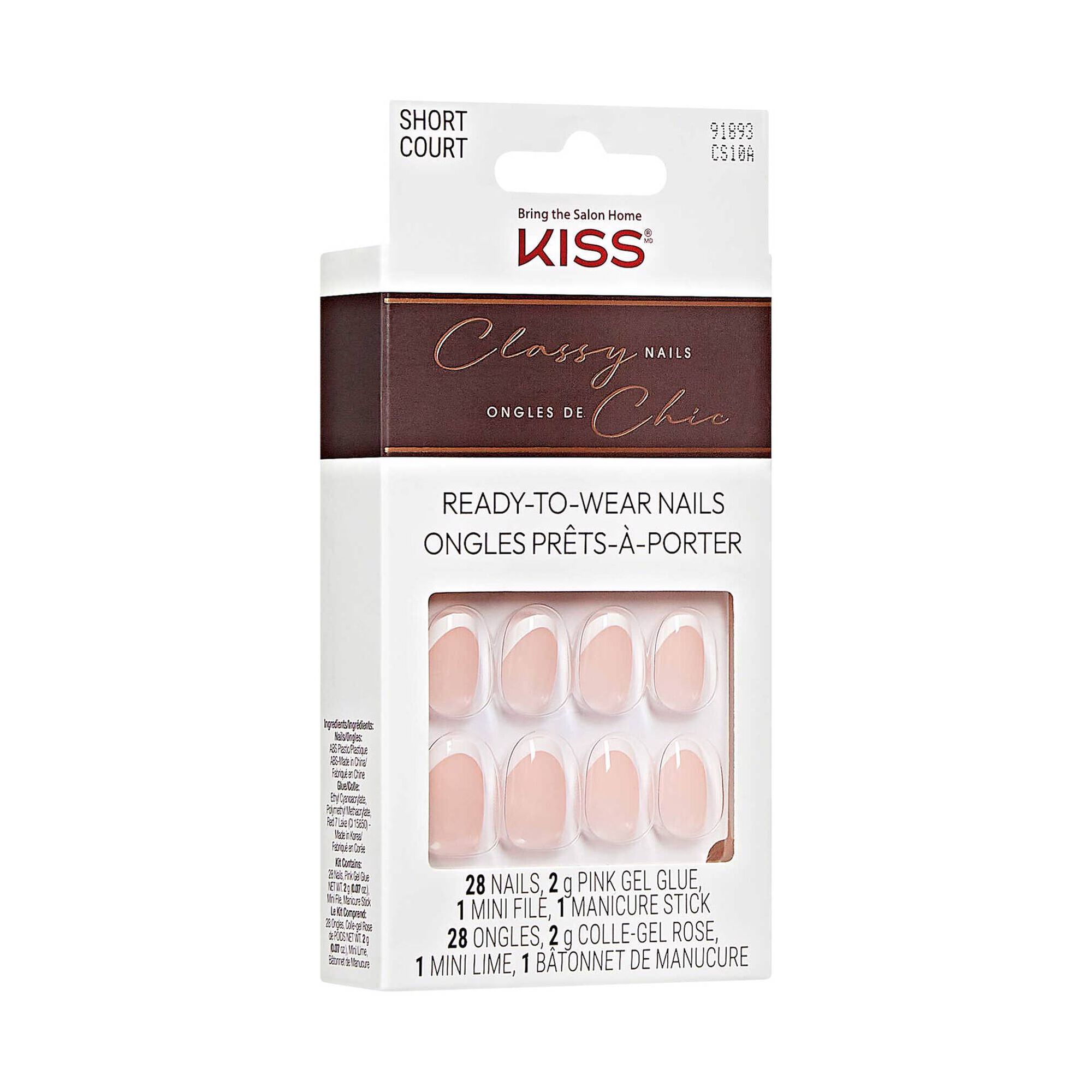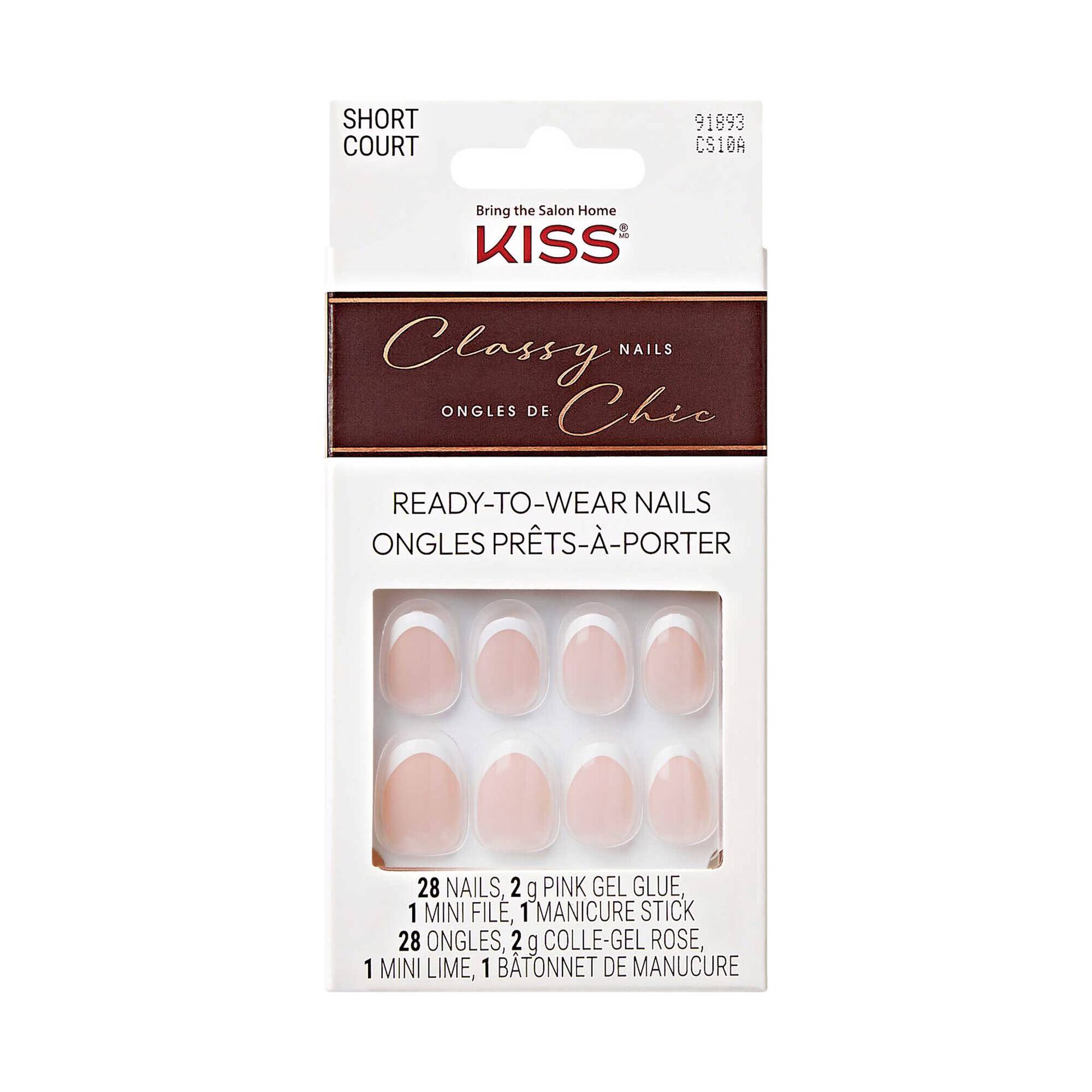 Tranquilidade e classe. Unhas francesas redefinidas com um toque moderno em comprimentos e formas modernas e sofisticadas que vai adorar. Classy Unhas é uma coleção de unhas postiças impecáveis, fáceis de usar, para o dia a dia, com uma nova versão dos designs franceses. As unhas postiças francesas ganham um toque moderno, com designs e formas atuais e um estilo super glamouroso. As unhas postiças vêm prontas para usar, sem necessidade de verniz, com um acabamento em gel que não mancha e se mantém perfeito.