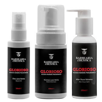 Este Coffret Glorioso é composto por: Champô para Barba 100ml + Óleo para Barba 50ml + After Shave 100ml