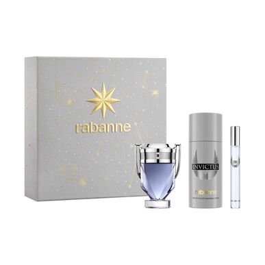 Descubra Invictus Eau de Toilette 50 ml, o desodorizante em spray 150 ml e o spray de viagem 10 ml para umas festas deslumbrantes.