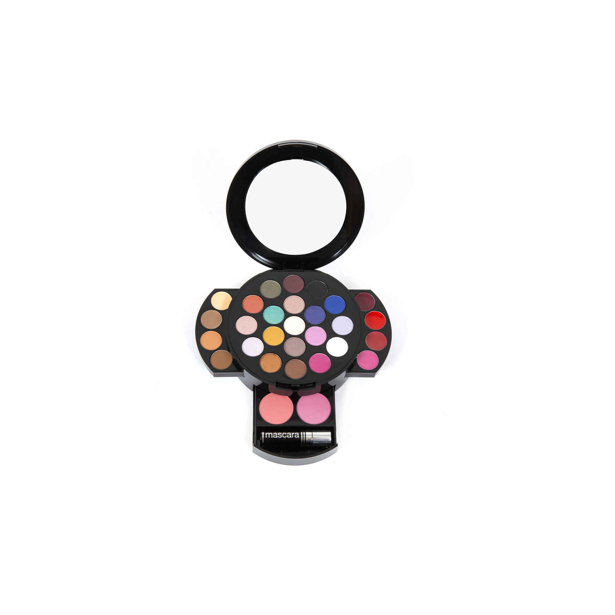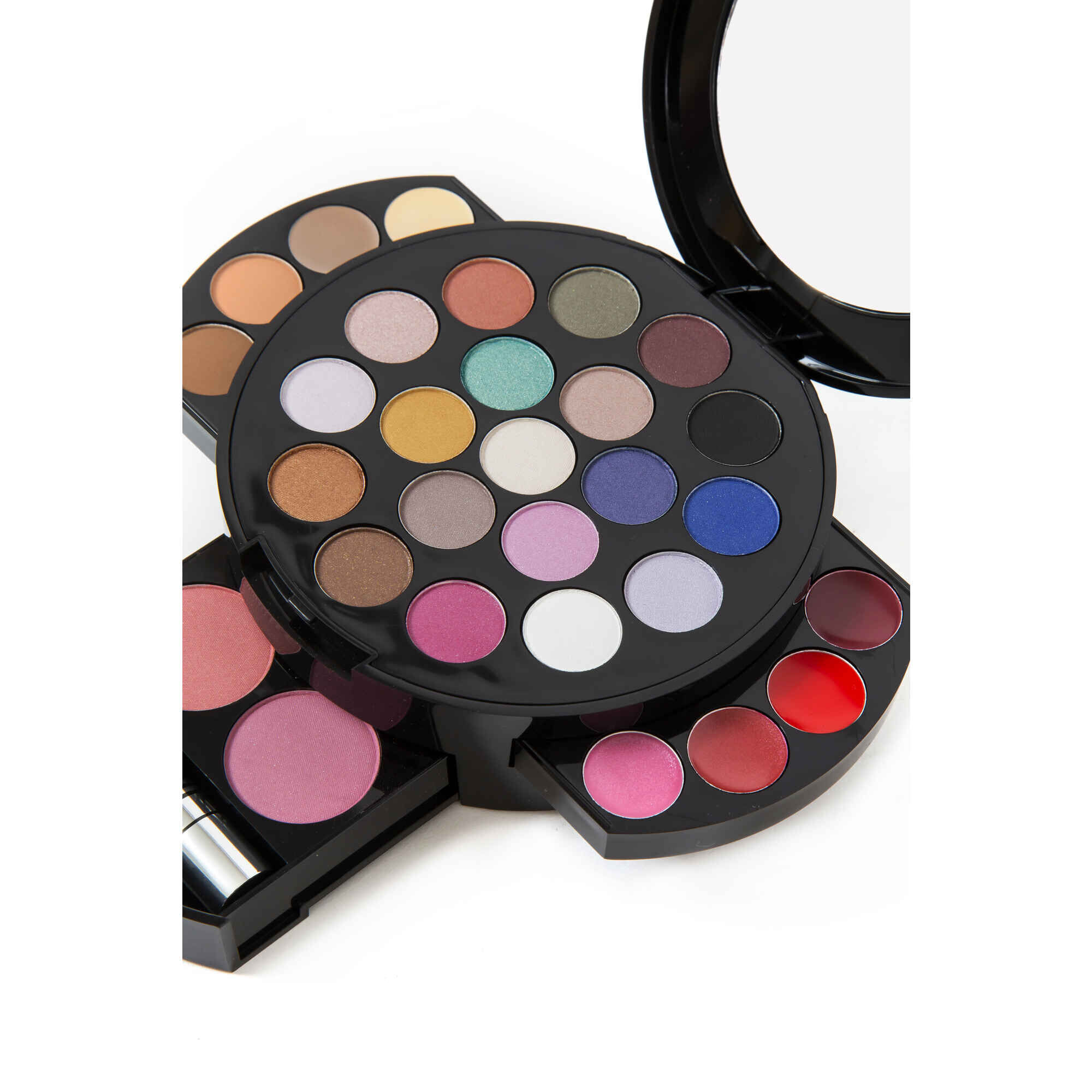 Inclui 19 sombras de olhos, 4 batons, 2 blushes, 2 contornos, 2 corretores e 1 rímel.