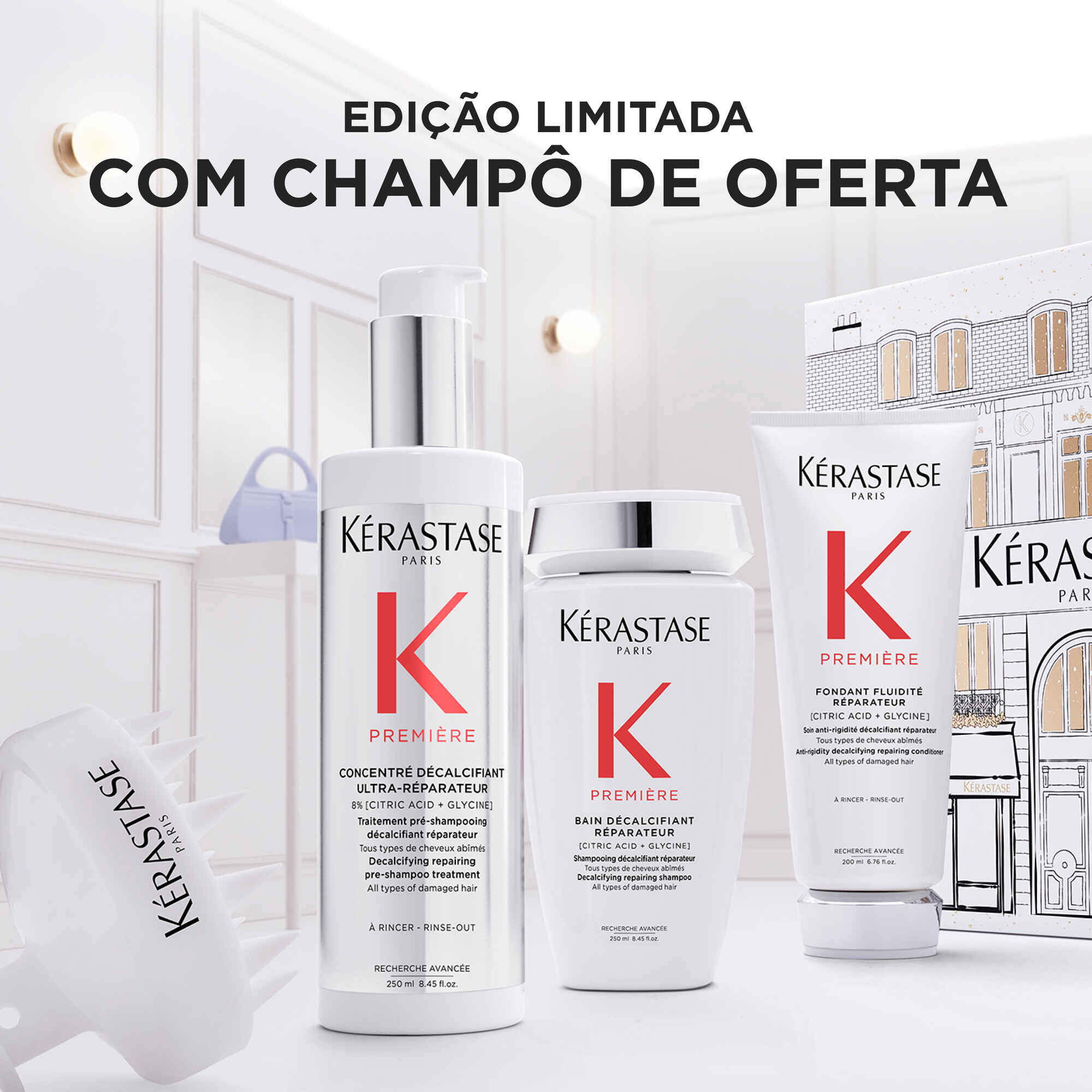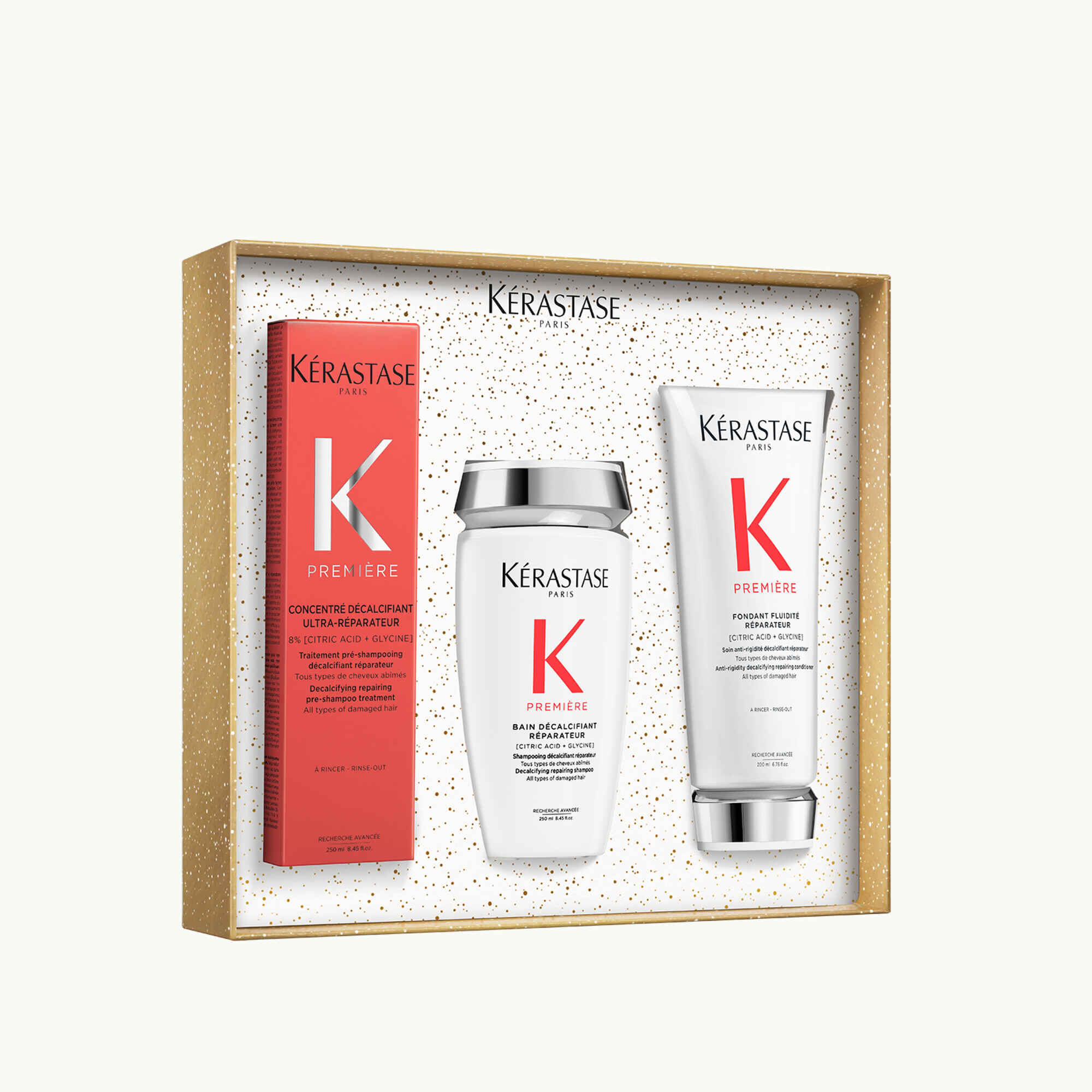 Edição limitada composta por tratamento pré-champô, champô e condicionador Première, para cuidar do cabelo danificado.
