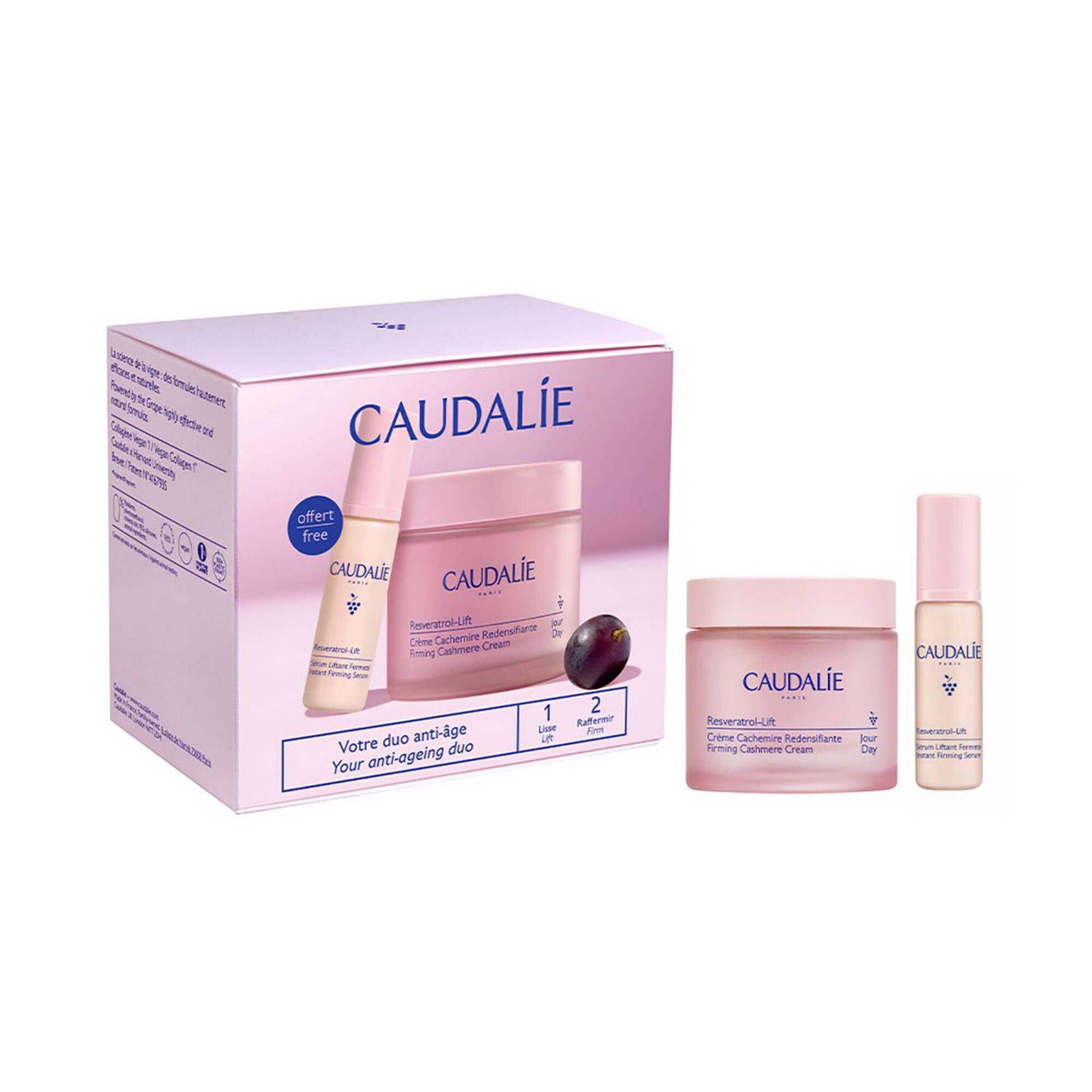 Coffret Resveratrol-Lift composto por: 1 Creme Caxemira Redensificador 50 ml e 1 Sérum Efeito Lifting Firmeza 10ml