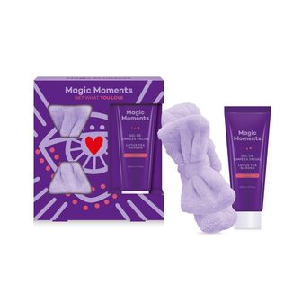 Coffret composto por: Gel de limpeza facial com fragrância de Lotus Tea Garden (130ml) + 1 fita de microfibra com laço para o cabelo.