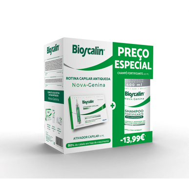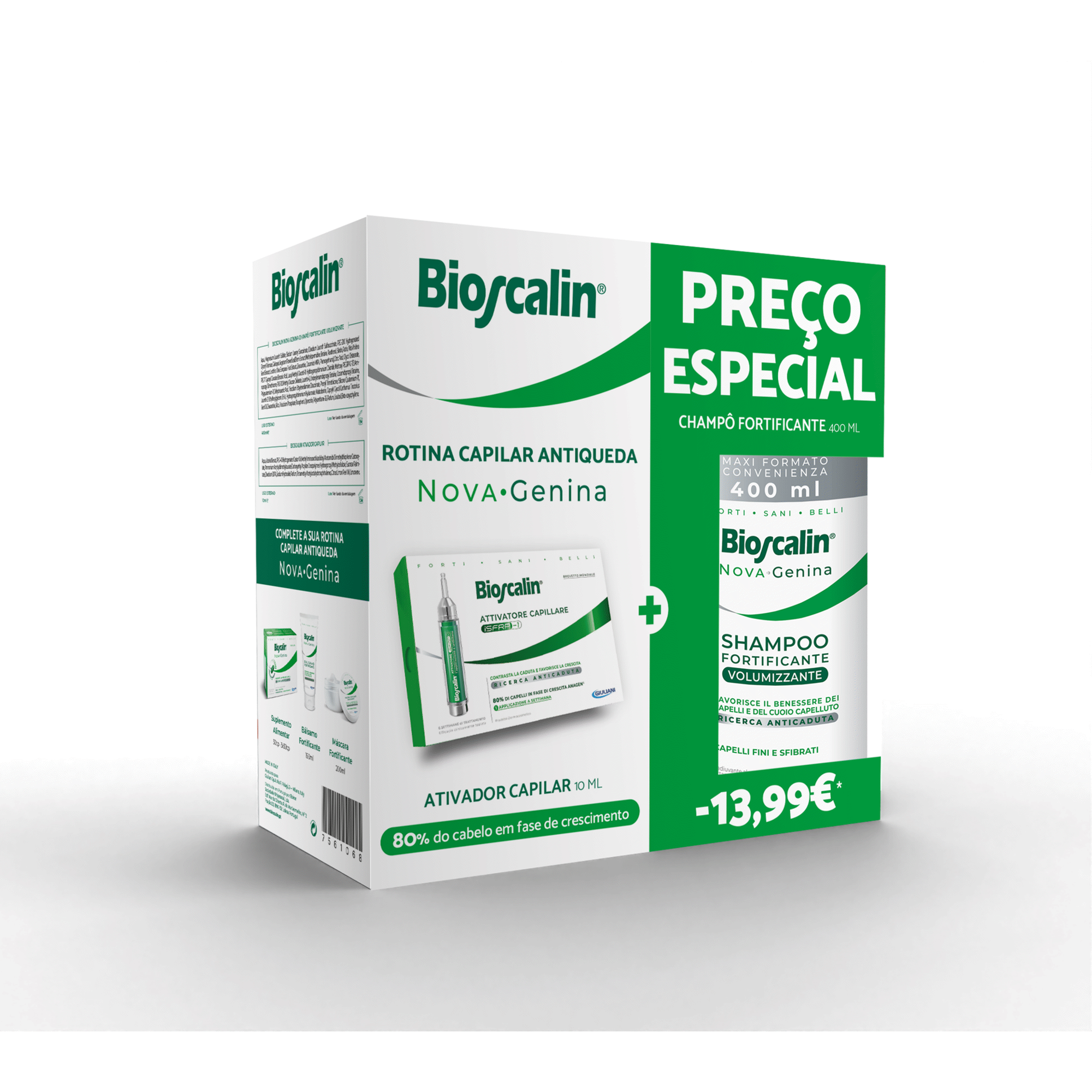 Coffret composto por: Ativador Capilar 10 ml + Champô Nova Genina Fortificante Volumizante 400 ml.